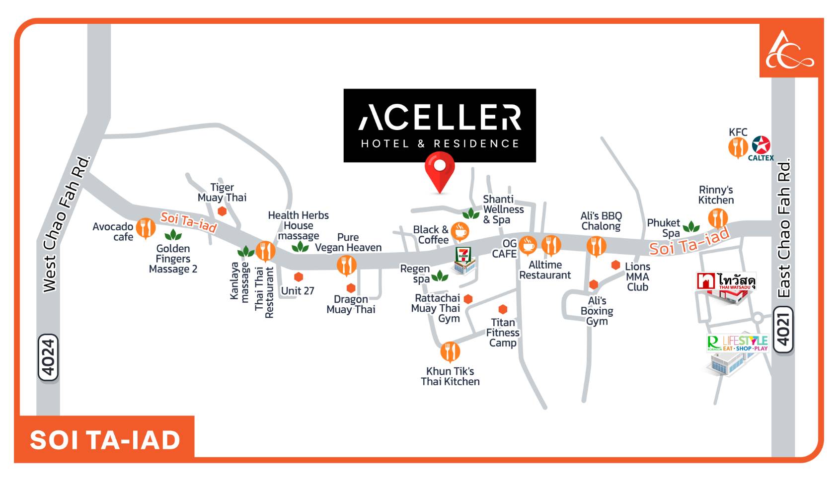 โครงการตั้งอยู่บนพื้นที่ 6 ไร่ 3 งาน 9.4 ตารางวา ในซอยตาเอียด ซึ่งได้รับการยอมรับระดับนานาชาติในฐานะ “World Class Fitness Destination” มีฟิตเนสและยิมที่ฝึกซ้อมการออกกำลังกายด้านต่าง ๆ ไม่น้อยกว่า 30 แห่ง บนถนนสายเล็ก ๆ ในเมืองภูเก็ตที่มีความยาวเพียง 1.577 กม. ดึงดูดผู้ที่รักการออกกำลังกายและดูแลสุขภาพตัวเองจากทั่วโลก ยุโรป อเมริกา รัสเซีย ตะวันออกกลางและเอเชีย