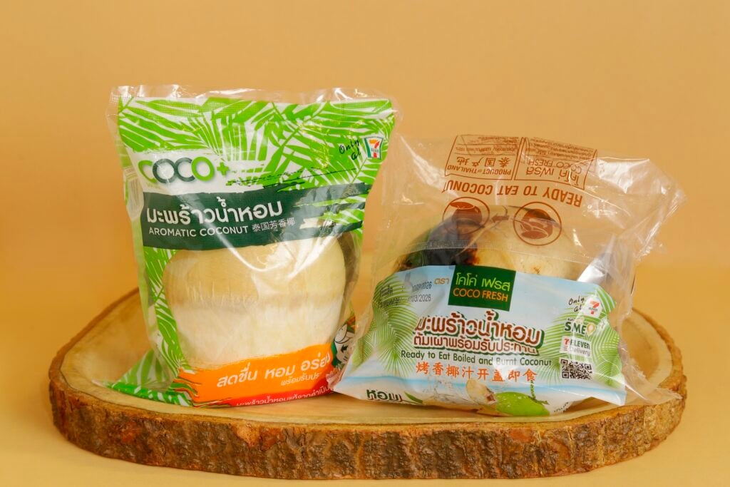 ผลจากการพัฒนาสินค้า ทำให้ผู้บริโภคสามารถเลือกอร่อยกับเมนูจากมะพร้าวได้อย่างหลากหลายภายในร้านเซเว่นฯ สำหรับคนที่ต้องการความสดชื่นระหว่างวัน มีสินค้าอย่างมะพร้าวน้ำหอมสด ทั้งแบบมะพร้าวควั่น และมะพร้าวเจีย ผ่านกระบวนการผลิตอย่างพิถีพิถัน เพิ่มความสะดวกในการเปิดทานด้วยเทคนิคการเจาะ ที่นำมาปรับให้สะดวกต่อการรับประทาน สามารถแช่เย็นพร้อมดื่มได้ทันที โดยมีให้เลือกทั้ง มะพร้าวน้ำหอมสด และมะพร้าวน้ำหอมต้มเผา