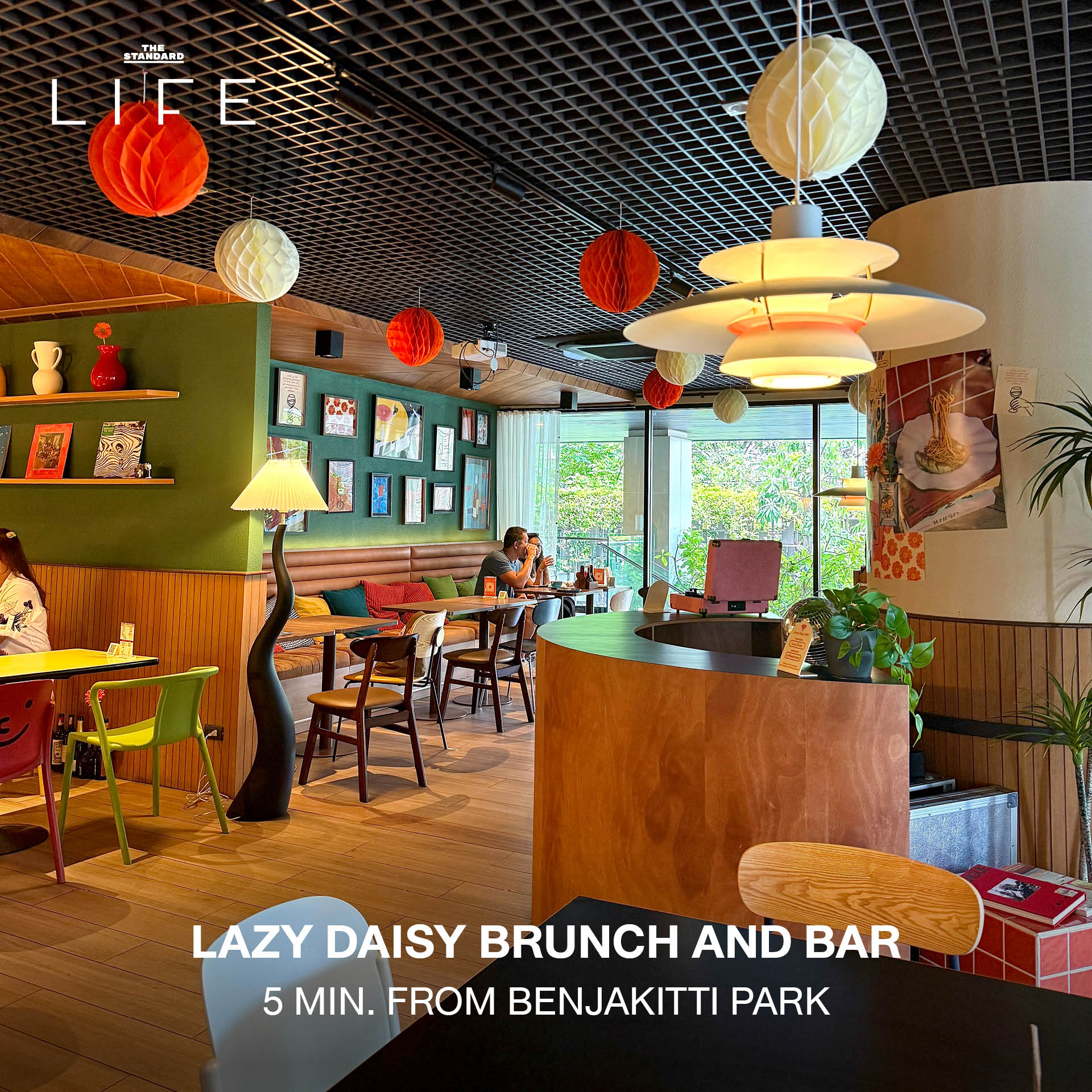 คาเฟ่บรันช์สุดสดใสที่เหมือนหลุดออกมาจากบอร์ด Pinterest ตั้งอยู่ภายในโรงแรม Gardina Asoke ย่านอโศก ซอยสุขุมวิท 16 Lazy Daisy มาพร้อมคอนเซปต์ “Your all-day living room” ที่พร้อมต้อนรับนักวิ่งตั้งแต่เช้าตรู่ 6 โมงเช้า ด้วยบรรยากาศสไตล์ Cozy ที่อบอุ่นและมีสีสัน เหมาะสำหรับเป็นจุดนัดพบหลังจบ Loop การวิ่งในสวนเบญจกิติ เพื่อมานั่งปล่อยใจจอยๆ ในไวบ์ที่ผ่อนคลายที่สุด