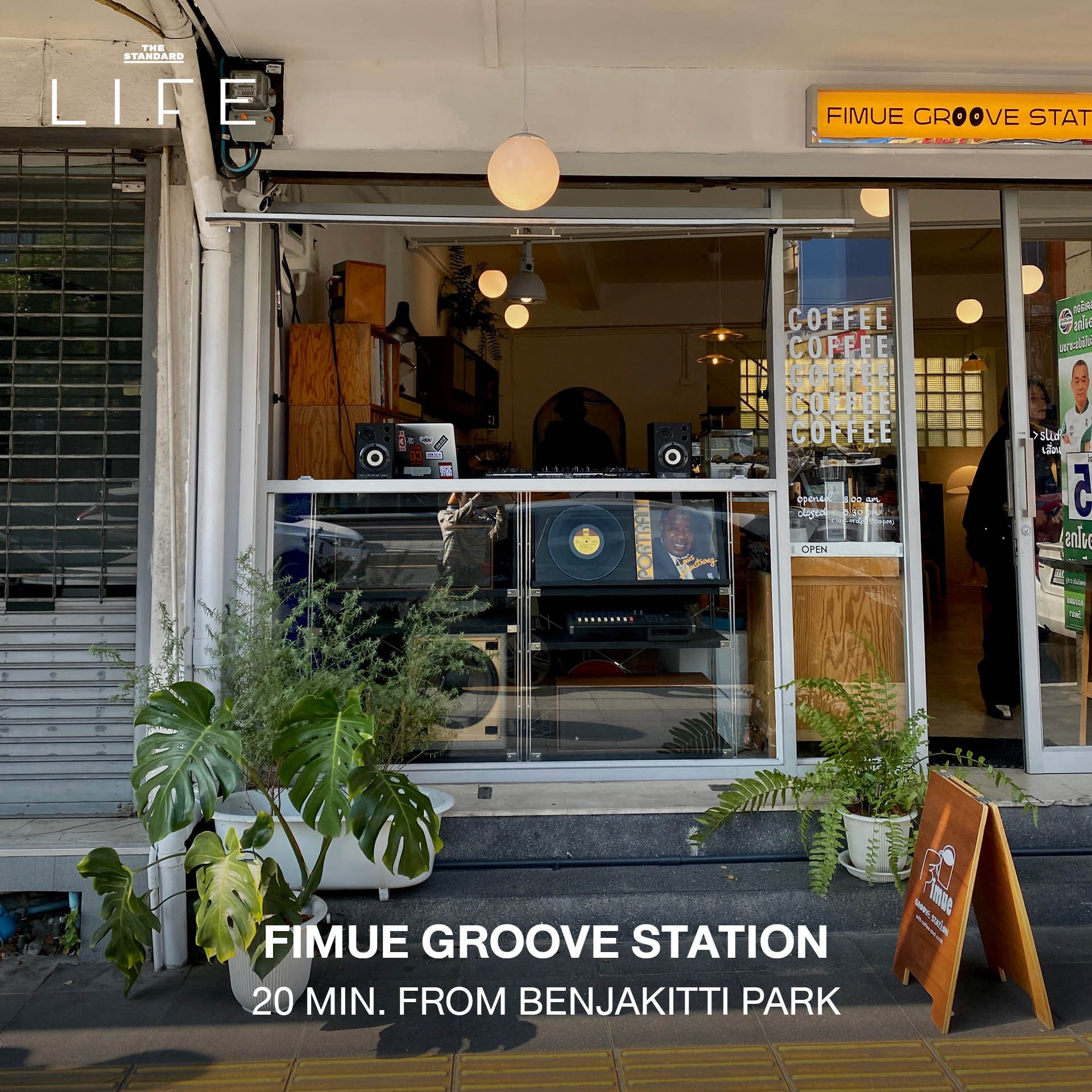 คาเฟ่ชื่อดังจากเชียงใหม่ที่ยก ‘ไวบ์เกาหลี’ มาไว้ที่ถนนพระราม 4 ใกล้ BTS พระโขนง Fimue Groove Station คือสเปซที่ผสมผสานระหว่างคาเฟ่และร้านขายของ Selective ชิคๆ สไตล์งานคราฟต์วินเทจเข้าด้วยกัน ไม่ว่าจะเป็นจานชาม ช้อนส้อม หรือของแต่งบ้านสุดน่ารัก ที่นี่ยังเพิ่มเสน่ห์ด้วยเสียงเพลงจากแผ่นเสียงและ DJ ที่มาเปิดเพลงคลอ สร้างคอมมูนิตี้เล็กๆ ให้นักวิ่งได้แวะมานั่งเมาท์มอย ฟังเพลง ในบรรยากาศที่เหมือนวาร์ปไปอยู่ย่านสุดฮิปในกรุงโซล