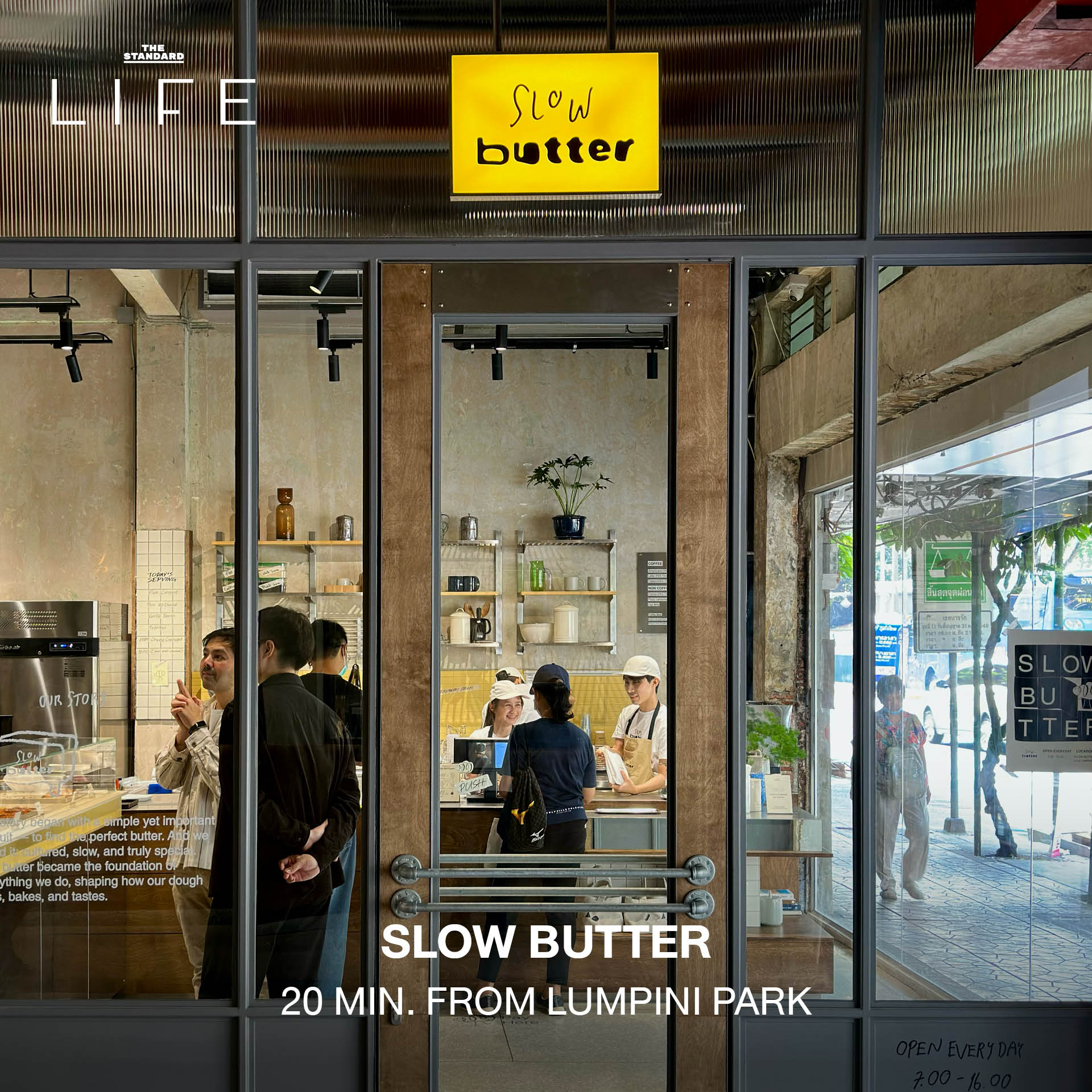 Butter Bakery สาขาใหม่ในอาคารเลครัชดา คอมเพล็กซ์ ตั้งอยู่ตรงข้ามกับสวนเบญจกิติพอดีเป๊ะ โดยตั้งใจจะเป็นพื้นที่เติมพลังให้กับคนเมืองและนักวิ่งภายใต้คอนเซปต์ ‘Comfort Everyday’ ที่อยากให้ทุกคนแวะมาได้บ่อยเท่าที่ใจต้องการ พร้อมกลิ่นหอมของขนมปังอบใหม่ที่ลอยมาทักทาย