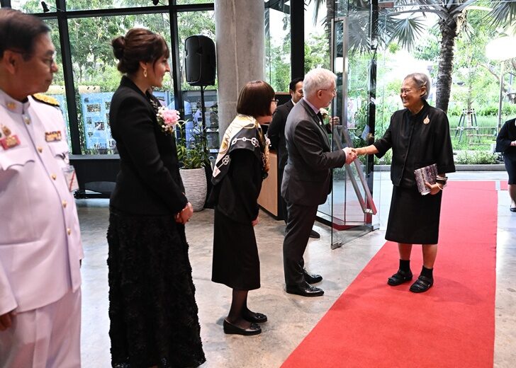 ในการนี้ สมเด็จพระกนิษฐาธิราชเจ้า กรมสมเด็จพระเทพรัตนราชสุดา ฯ สยามบรมราชกุมารี ทรงทอดพระเนตรวีดิทัศน์เฉลิมพระเกียรติด้านการส่งเสริมการเผยแพร่ภาษาและวัฒนธรรมฝรั่งเศส ตลอดจนการเสริมสร้างความร่วมมือทางวิชาการ วิทยาศาสตร์ และวัฒนธรรมระหว่างสองประเทศ ซึ่งจัดทำโดยสถานเอกอัครราชทูตฝรั่งเศสประจำประเทศไทย จากนั้น ทรงมีพระราชดำรัสเป็นภาษาฝรั่งเศส และเสด็จพระราชดำเนินทอดพระเนตรนิทรรศการเฉลิมฉลองความสัมพันธ์ฝรั่งเศส–ไทย ผลงานของนายมาร์ก ฌอฟฟรอย (Marc Geoffroy) ซึ่งนำเสนอมิตรภาพระหว่างสองประเทศอันยาวนานกว่า 340 ปี ตั้งแต่รัชสมัยสมเด็จพระนารายณ์มหาราชสืบเนื่องมาจนถึงปัจจุบัน