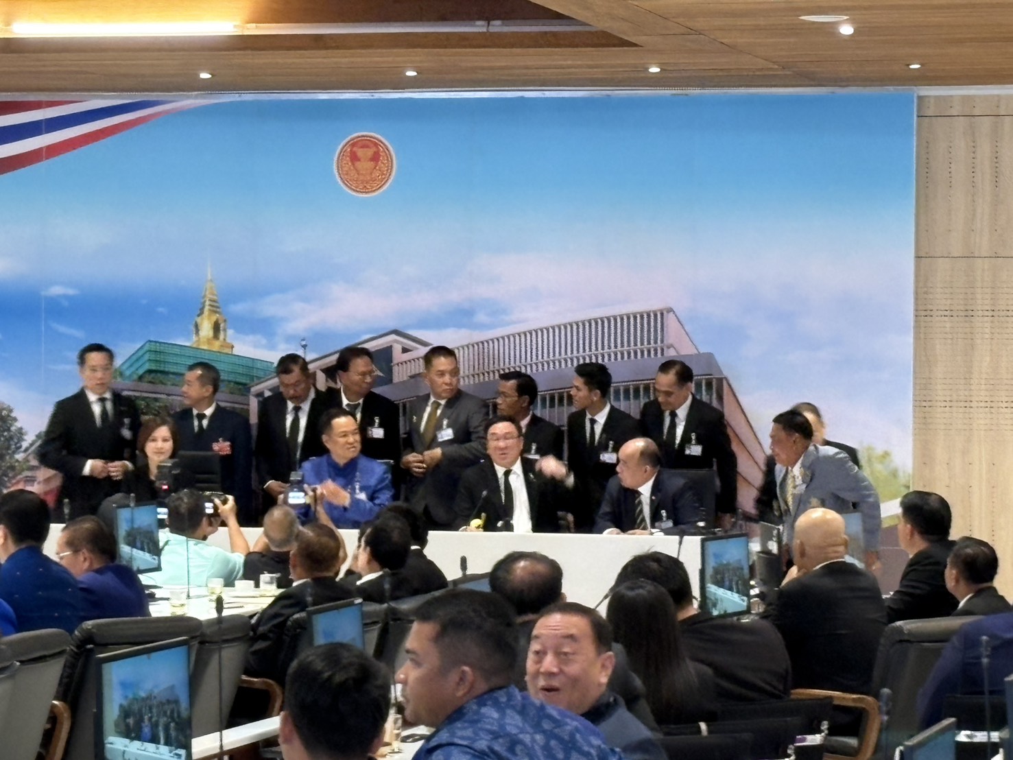 โดยบรรยากาศการประชุมเป็นไปอย่างคึกคัก มี สส. จากทุกพรรค เข้าร่วมประชุมกันอย่างพร้อมเพรียง จากการสังเกต สส.พรรคภูมิใจไทย มีการนัดกันแต่งกายด้วยชุดผ้าไทย สีน้ำเงิน ซึ่งเป็นสีประจำพรรคภูมิใจไทยกันอย่างพร้อมเพรียง