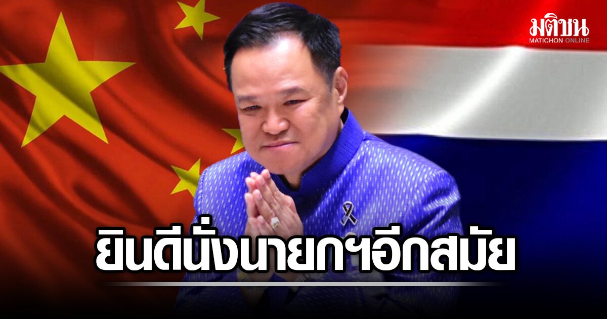 จีน แสดงความยินดี ‘อนุทิน’ นั่งนายกฯอีกสมัย เชื่อมั่นประสบความสำเร็จพัฒนาชาติ