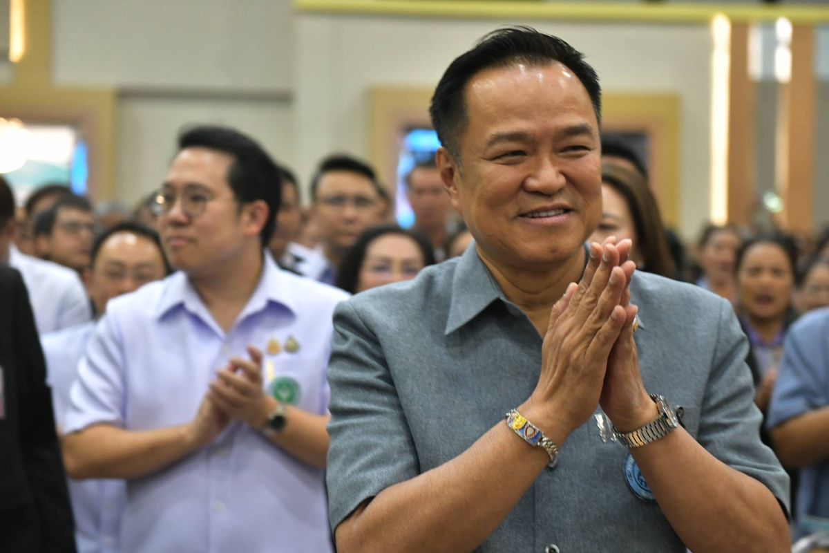 นายอนุทิน ชาญวีรกูล นายกรัฐมนตรี และ รมว.มหาดไทย ให้สัมภาษณ์ถึงความคืบหน้าการจัดตั้งคณะรัฐมนตรี (ครม.) โดยนายอนุทินยิ้มรับ ไม่ได้ตอบคำถาม