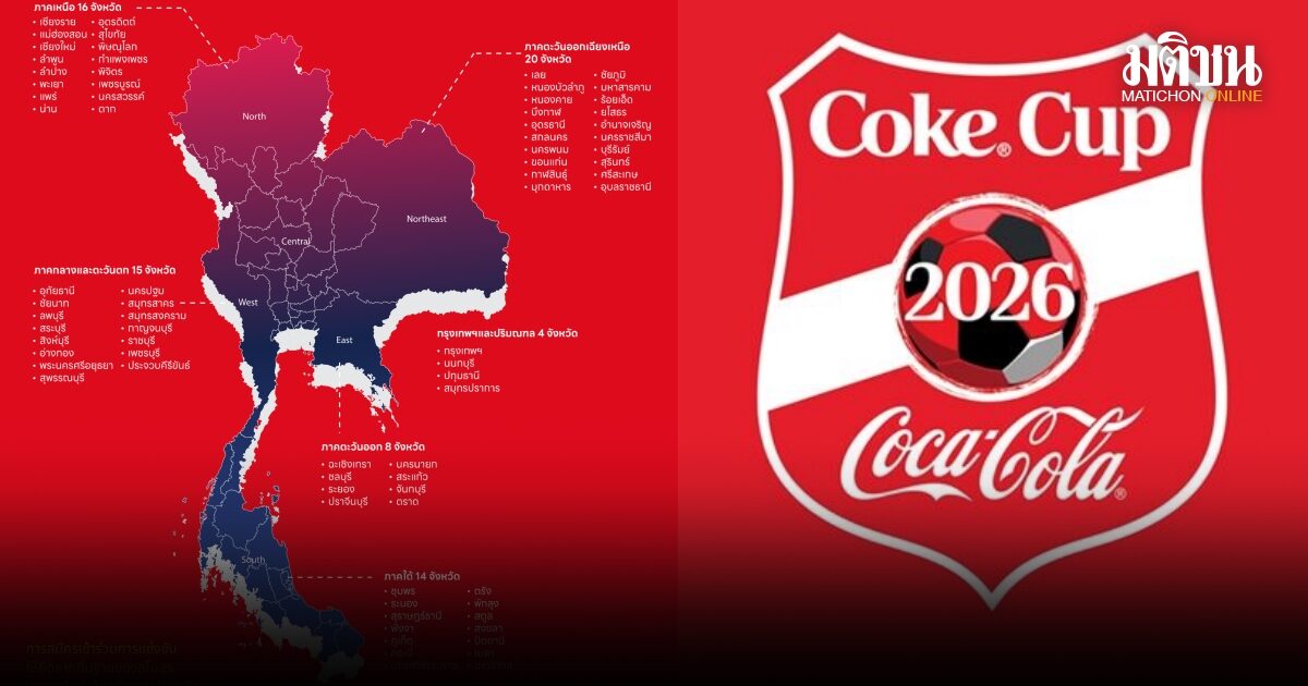 ศึกฟุตบอลโค้ก คัพ U-17 ไทยแลนด์ แชมเปี้ยนชิพ 2026 กลับมาระเบิดความมันอีกครั้งทั่วทุกภูมิภาคของประเทศไทย โดยรอบภูมิภาค จะแบ่งออกเป็น 6 โซน ดังนี้