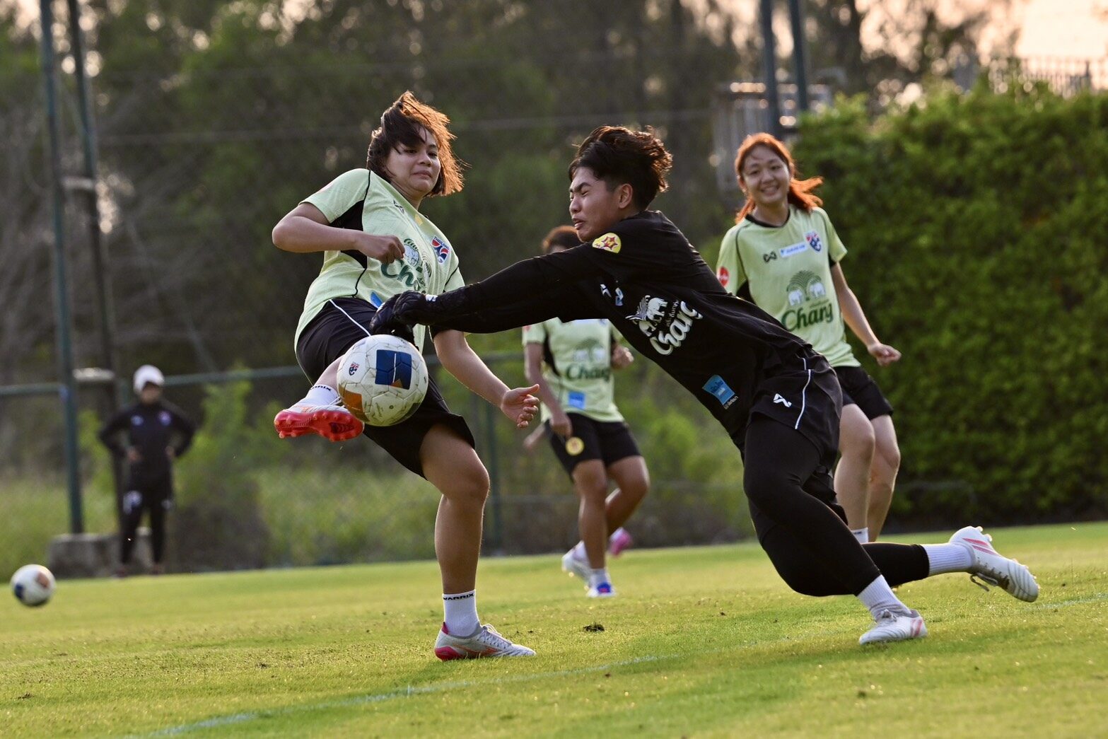 การฝึกซ้อมครั้งนี้ “โค้ชหนึ่ง” หนึ่งฤทัย สระทองเวียน หัวหน้าผู้ฝึกสอน นำทัพติวเข้ม โดยเน้นไปที่วิธีการเข้าทำและจบสกอร์ ซึ่งใช้เวลา 1 ชั่วโมง 30 นาที