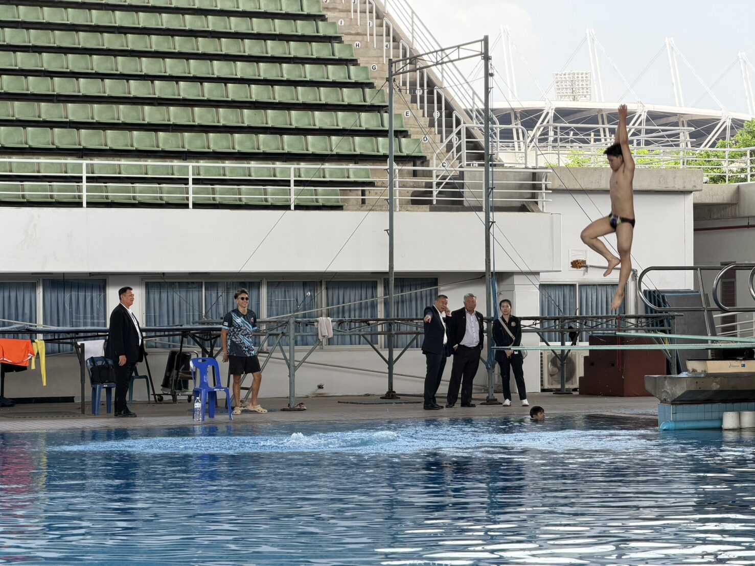 หลังจากเสร็จพิธีลงนามความร่วมมือ พล.ต.ดร.ธนนท์, นายธนาวิชญ์ และ ผู้ช่วยศาสตราจารย์มานะ ได้เดินทางมาเยี่ยมนักกีฬาเยาวชนที่กำลังฝึกซ้อมรวมทั้งดูความพร้อมของสถานที่ตรวจเช็คสภาพอุปกรณ์และสระให้อยู่ในเกณฑ์มาตรฐาน