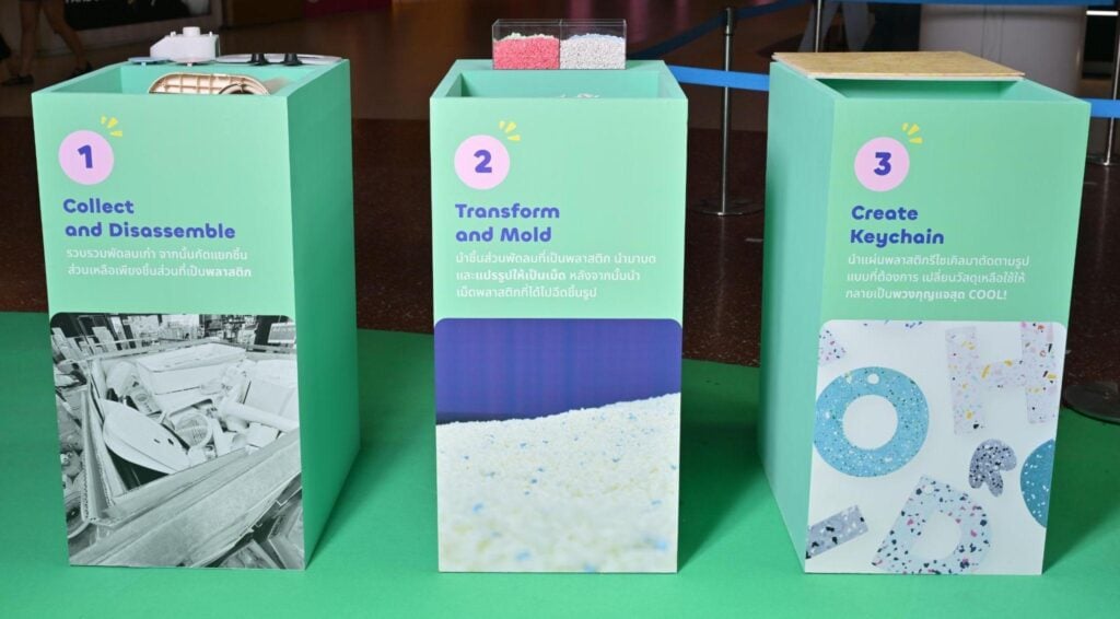 คุณทัศน์ลักษณ์ พานิชตระกูล ผู้ช่วยกรรมการผู้จัดการ สายงานการวิจัยและพัฒนา เสริมว่า งานนี้เป็นเพียงกิจกรรมนำร่อง ในอนาคตบริษัทมีแผนนำพลาสติกรีไซเคิลมาผลิตเป็นสื่อจัดแสดงบนชั้นสินค้าเพื่อลดการใช้วัสดุใหม่ รวมถึงปรับกระบวนการผลิตระยะยาวให้เป็นมิตรต่อสิ่งแวดล้อมมากขึ้น
