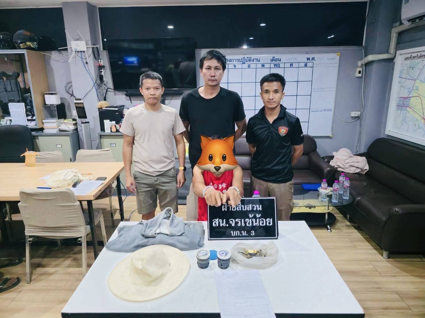 ผลการตรวจค้นภายในบริเวณเพิงพักดังกล่าว พบของกลางที่ใส่ขณะก่อเหตุอยู่บริเวณโต๊ะหน้าเพิงพัก และพบรถจักรยานใช้ในการก่อเหตุอยู่บนสะพานทางเข้าเพิงพักดังกล่าว เจ้าหน้าที่แจ้งข้อหา“ลักทรัพย์ในเวลากลางคืนโดยใช้ยานพาหนะหรือรับของโจร” จึงนำตัวผู้ถูกจับพร้อมของกลางและเอกสาร นำส่งพนักงานสอบสวน สน.จรเข้น้อย ดำเนินคดีตามกฎหมายต่อไป