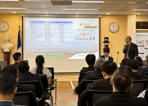 โครงการอควาเซียน (AquASEAN) สะท้อนถึงความมุ่งมั่นของฝรั่งเศสในการเสริมสร้างร่วมมือกับอาเซียนและประเทศสมาชิก เพื่อส่งเสริมแนวทางการพัฒนาที่ยั่งยืนและความสามารถในการปรับตัวต่อการเปลี่ยนแปลงสภาพภูมิอากาศ โดยอาศัยองค์ความรู้ทางวิทยาศาสตร์ นวัตกรรม และความร่วมมือเชิงปฏิบัติ ทั้งนี้ การบูรณาการฟาร์มนำร่อง การเสริมสร้างศักยภาพ และการสนับสนุนนโยบายสาธารณะ จะก่อให้เกิดผลลัพธ์ที่สามารถนำไปประยุกต์ใช้ได้อย่างเป็นรูปธรรม และช่วยเร่งการขับเคลื่อนการเพาะเลี้ยงสัตว์น้ำที่เป็นมิตรต่อสิ่งแวดล้อมในภูมิภาคต่อไป