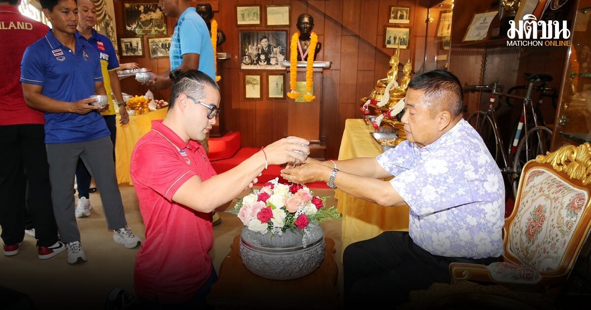 นักกีฬาจักรยานทีมชาติไทยประเภทบีเอ็มเอ็กซ์ และประเภทลู่ ชุดเตรียมทีมเข้าแข่งขันกีฬาเอเชี่ยนเกมส์ ครั้งที่ 20 ที่เมืองนาโกย่า ประเทศญี่ปุ่น ทำพิธีสรงน้ำพระ และรดน้ำดำหัวขอพรจาก พล.อ.เดชา เหมกระศรี นายกสมาคมกีฬาจักรยานแห่งประเทศไทยฯ เนื่องในเทศกาลสงกรานต์ ปีใหม่ไทย 2569 เพื่อความเป็นสิริมงคล และเป็นขวัญกำลังใจในการฝึกซ้อม ที่ห้องเกียรติภูมิ สมาคมกีฬาจักรยานฯ เวลโลโดรม หัวหมาก เมื่อวันที่ 10 เมษายน 2569