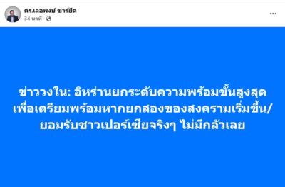 เมื่อวันที่ 12 เมษายน ดร.เลอพงษ์ ซาร์ยีด อาจารย์ภาควิชาอิสลามการเมือง มหาวิทยาลัยนานาชาติอัลมุศฏอฟา ประเทศอิหร่าน และนายกสมาคมนักเรียนเก่าไทย-อิหร่าน โพสต์ข้อความผ่านเฟซบุ๊ก ระบุว่า