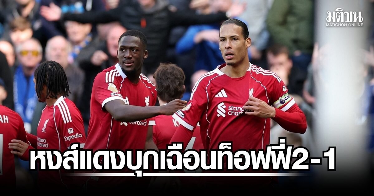ลิเวอร์พูล ได้ประตูชัยนาทีบาป บุกชนะเอฟเวอร์ตัน 2-1 ในการแข่งขันฟุตบอลพรีเมียร์ลีก อังกฤษ นัดเมอร์ซีไซด์ ดาร์บี้ ที่ฮิลล์ ดิคกินสัน สเตเดียม เมื่อวันที่ 19 เมษายน