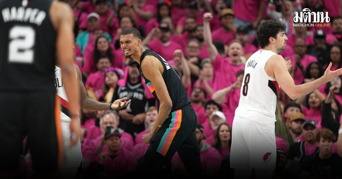 วิคเตอร์ เวมบานยาม่า เซ็นเตอร์ตัวเก่งของซานอันโตนิโอ สเปอร์ส ทำ 35 คะแนน ในการแข่งขันรอบเพลย์ออฟ ครั้งแรกของตัวเองในบาสเกตบอลเอ็นบีเอ ช่วยพาทีมชนะพอร์ทแลนด์ เทรลเบลเซอร์ส 111-98 ของเกมแรก สายตะวันตก ที่ฟรอสต์ แบงก์ เซ็นเตอร์ เมื่อวันที่ 19 เมษายน