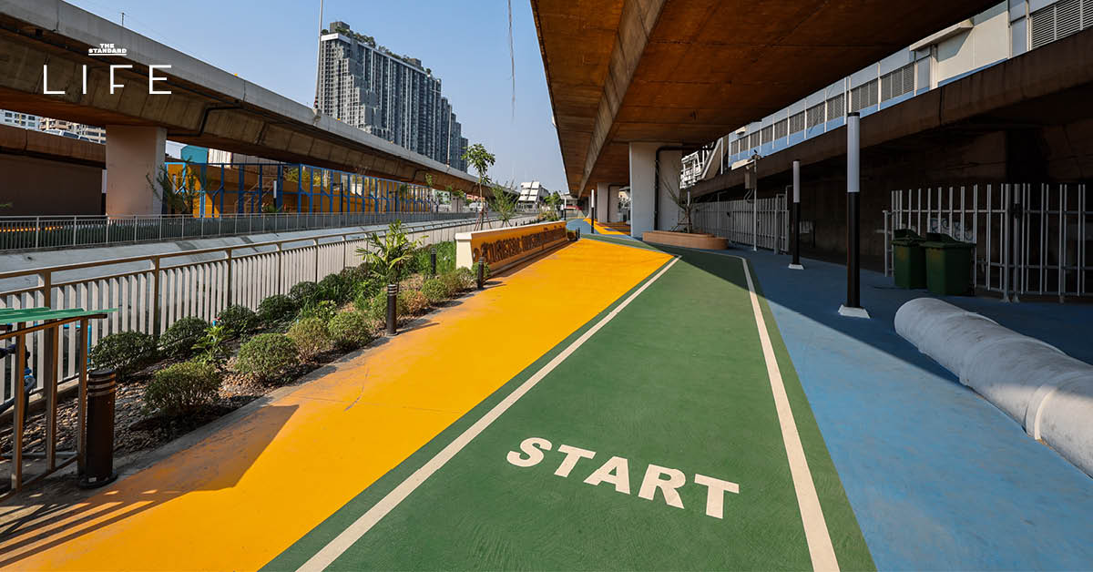 และเราชอบไอเดียการใช้พื้นที่ใต้ทางยกระดับให้เกิดประโยชน์สูงสุดแบบนี้ ที่นี่อาจไม่ได้เป็นสวนที่ให้เราไปนั่งปิกนิกใต้ต้นไม้ใหญ่ แต่อย่างน้อยก็มีพื้นที่ที่ตอบโจทย์คนในย่านตลาดพลูและฝั่งธนฯ ที่ต้องการสเปซสำหรับขยับร่างกายจริงๆ