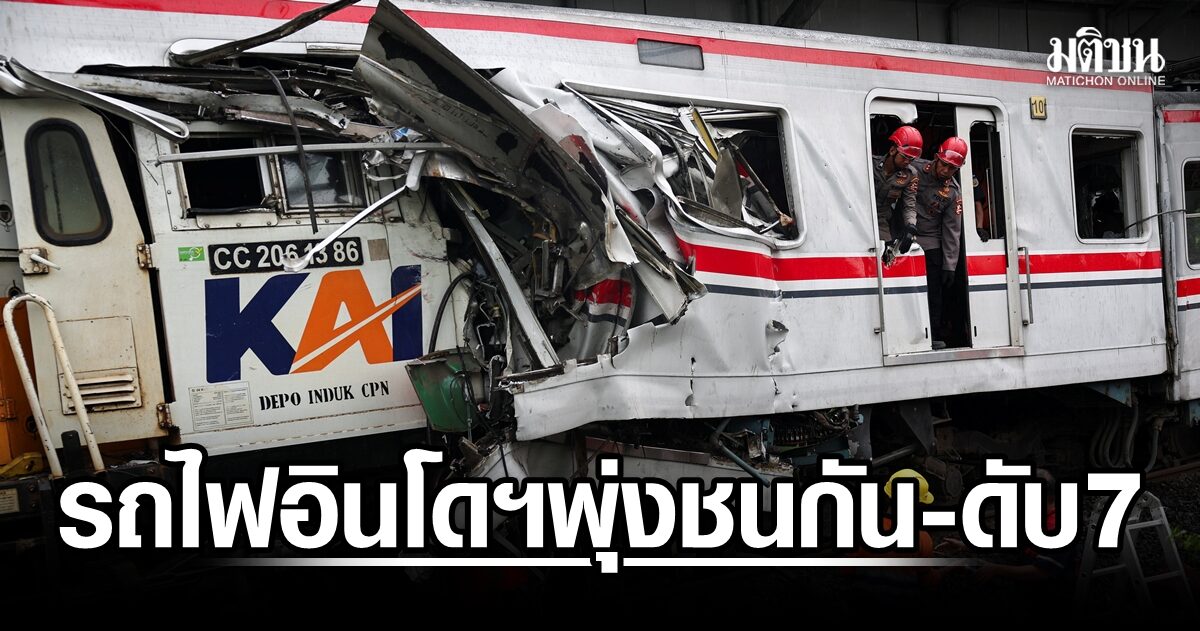 อินโดฯ สลด! รถไฟชานเมืองพุ่งชนรถไฟทางไกล ดับ 7 เจ็บ 81